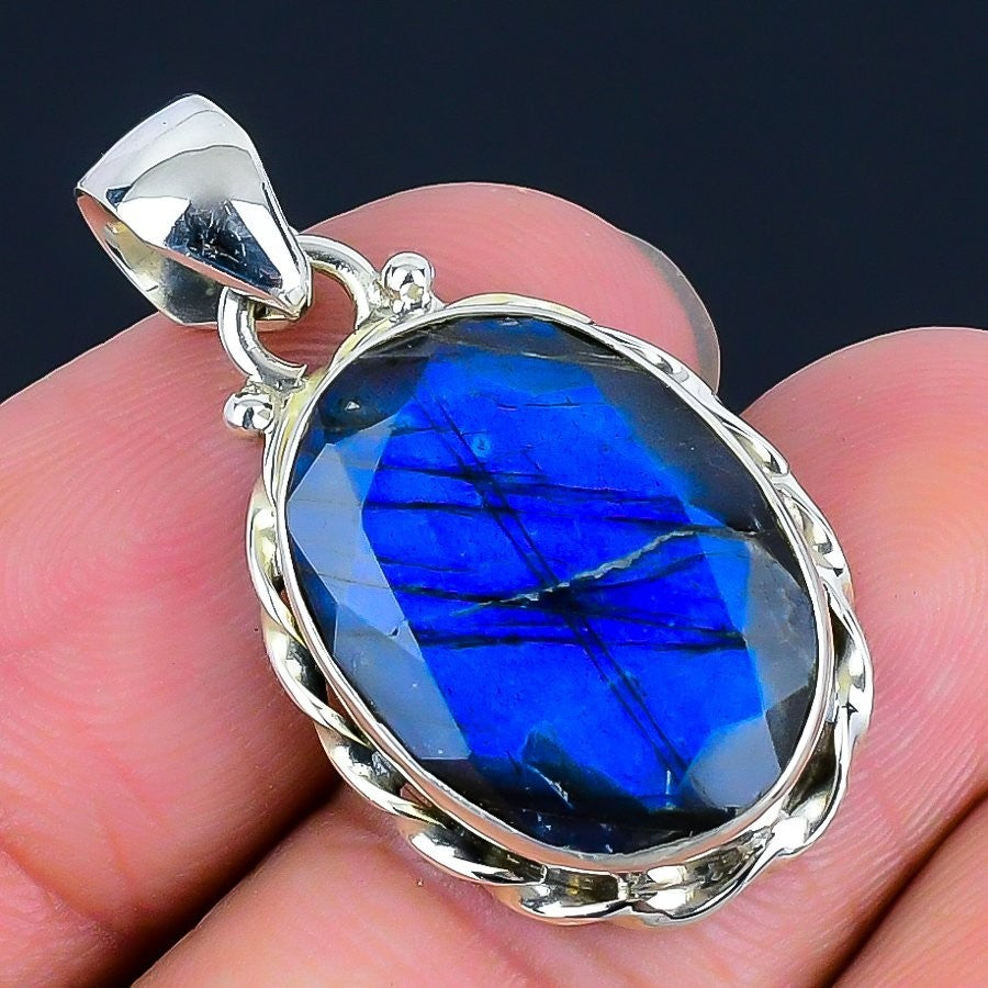 Natural Labradorite Bezel Birthday Engagement Pendant Jewelry Sterling Silver