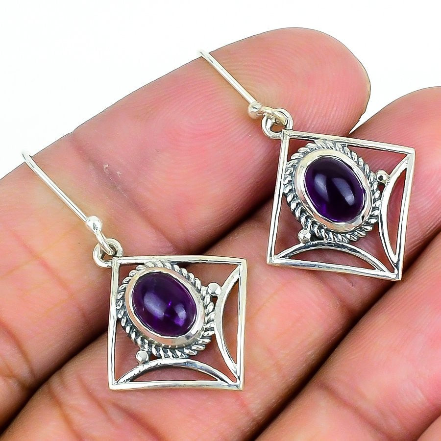 Natural Amethyst Dangle Hook Daughter Gift New Earrings Jewelry 925 Solid Silver