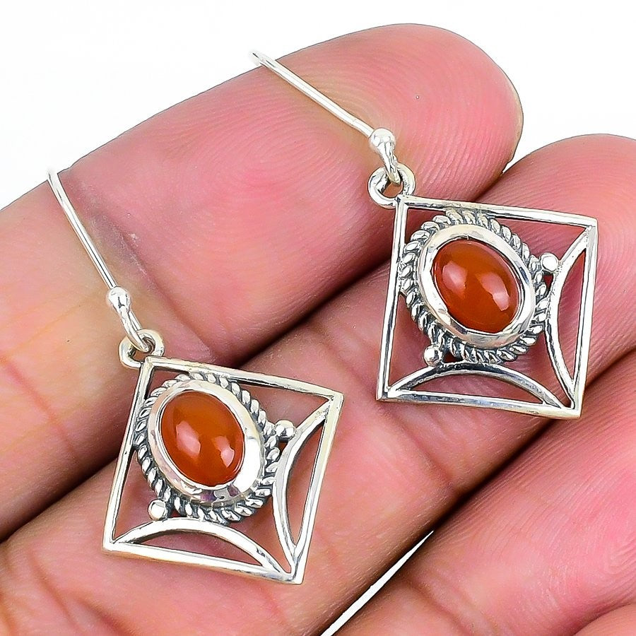 Orange Carnelian Gemstone Wife Dangle Hook Earrings Jewelry 925 Sterling Silver