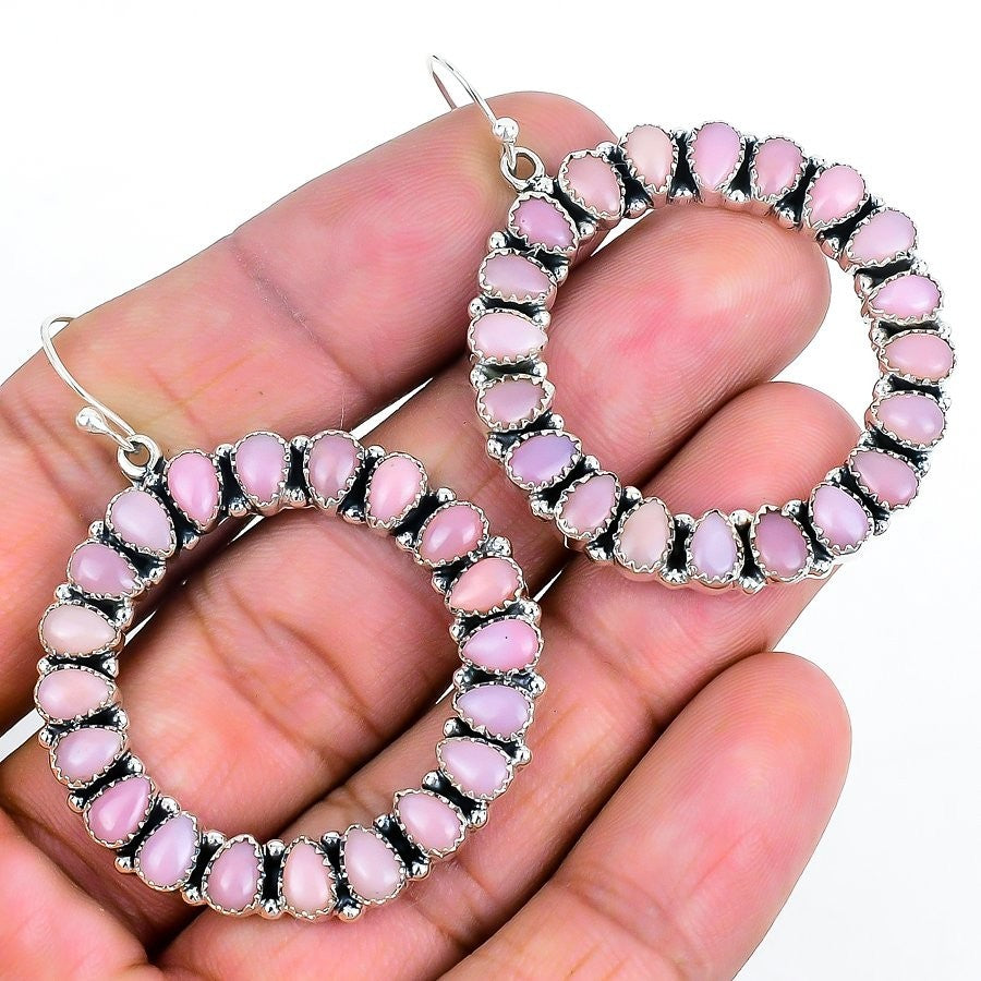 Pink Opal Stone 925 Sterling Silver Hook Drop Dangle Sister New Earrings Jewelry