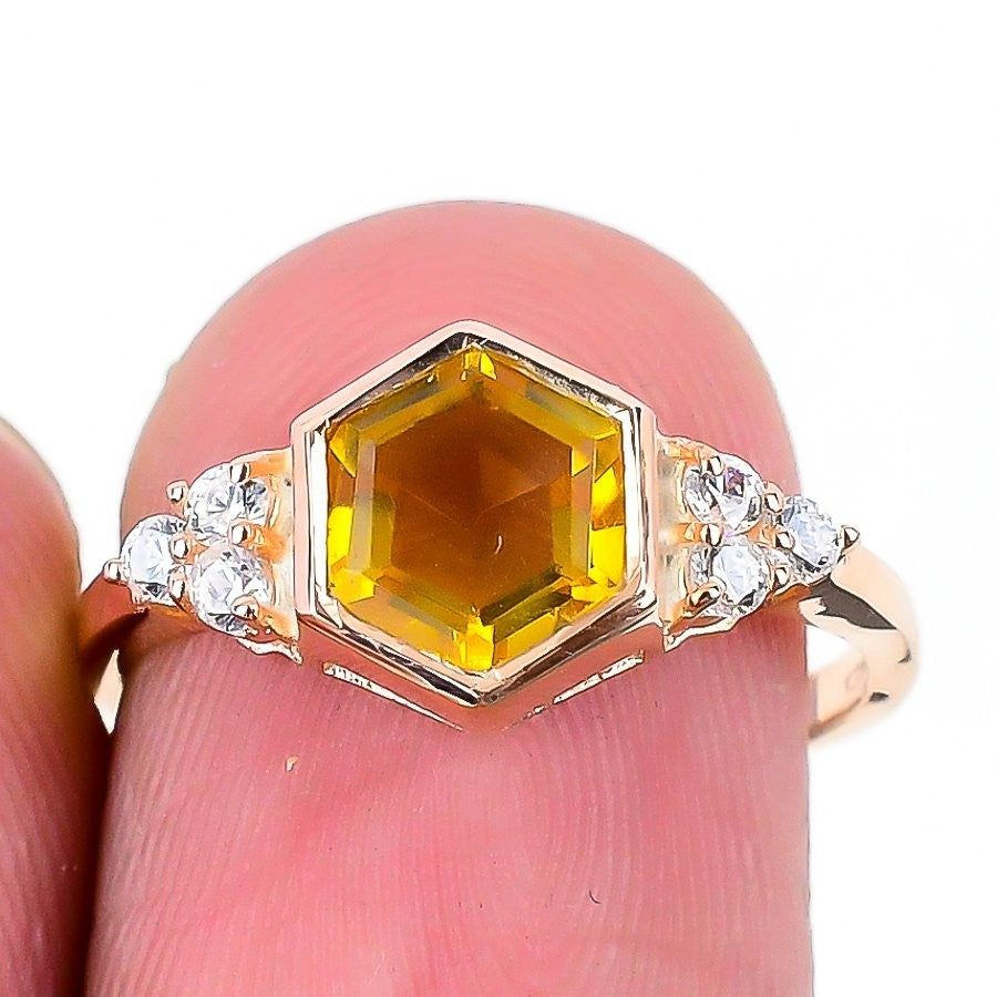 Natural Citrine Sterling Silver Gold Vermeil Statement Wedding Ring Jewelry US 7