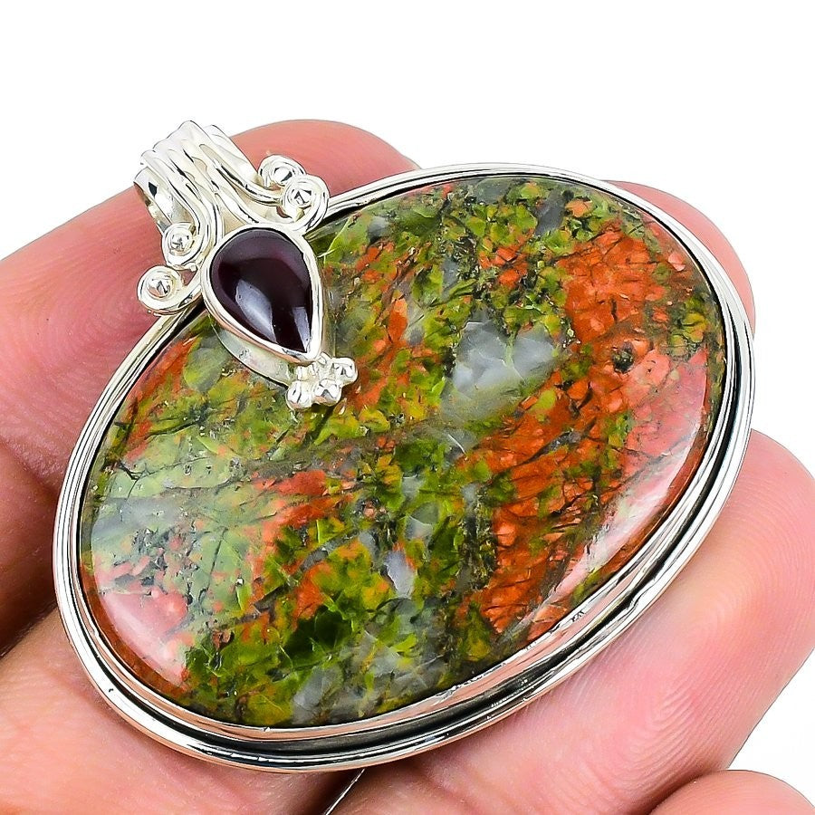 Unakite Gemstone Solid Silver Daughter Wedding Bezel Anniversary Pendant Jewelry