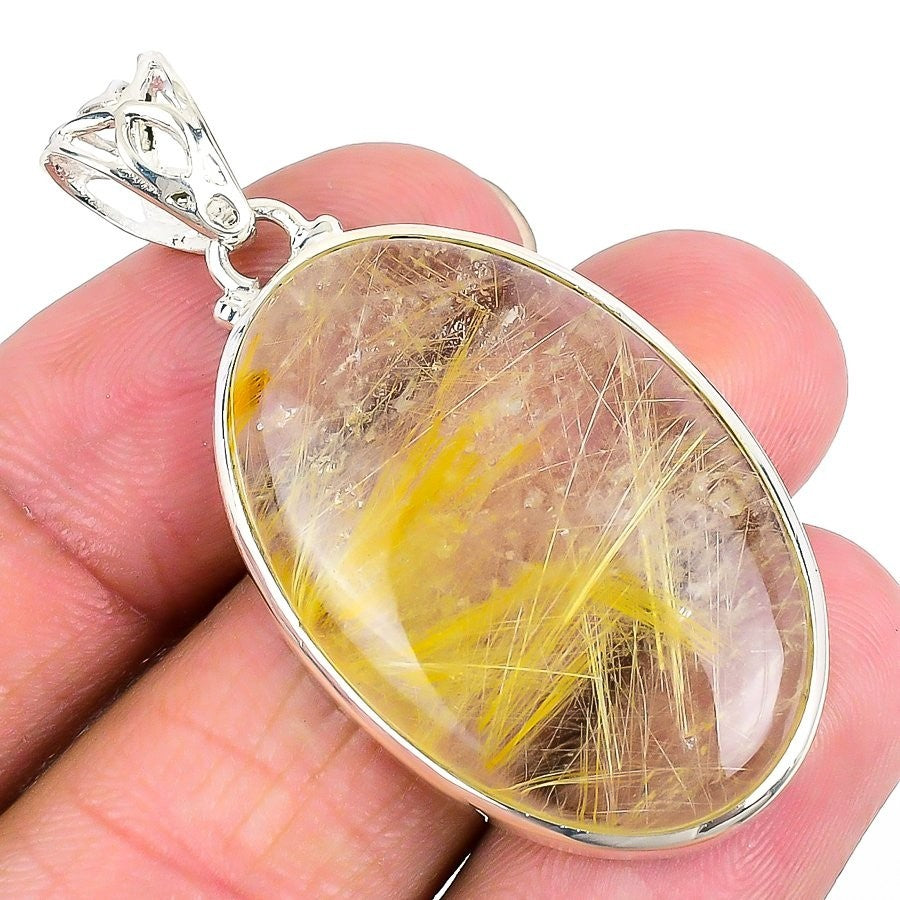 Golden Rutile Stone Sterling Silver Mother Elegant Daughters Day Pendant Jewelry