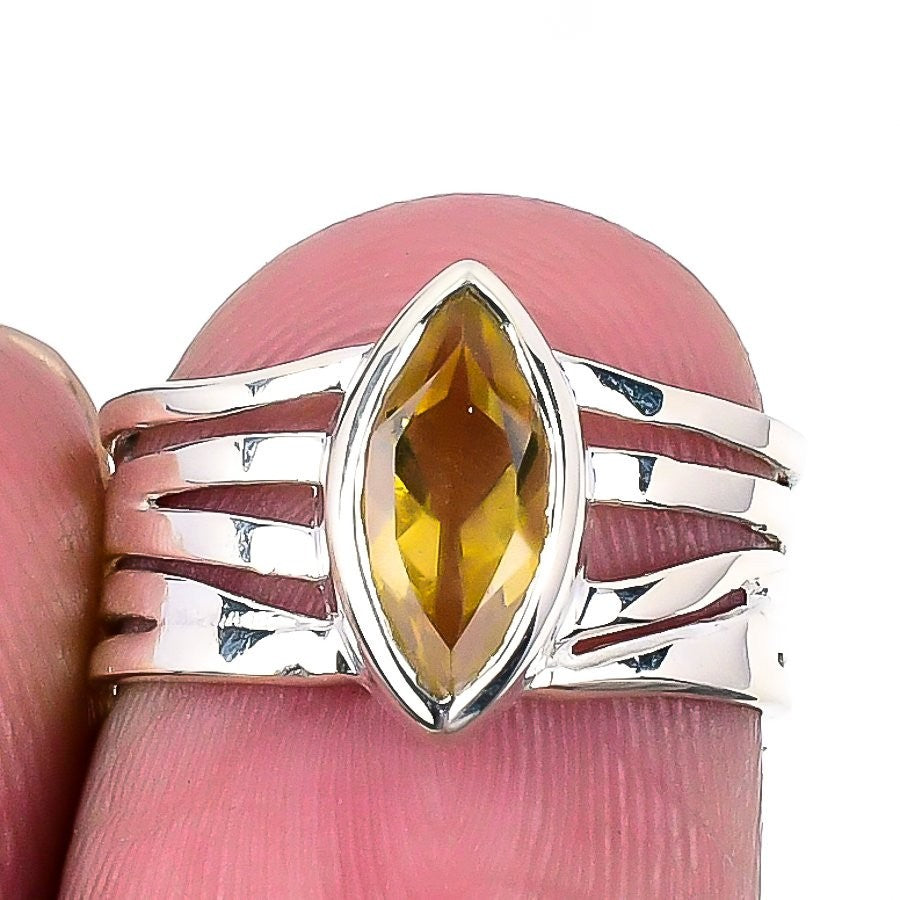 Citrine Stone Solid Silver Statement Best Daughters Gift Ring Jewelry Size 5.5