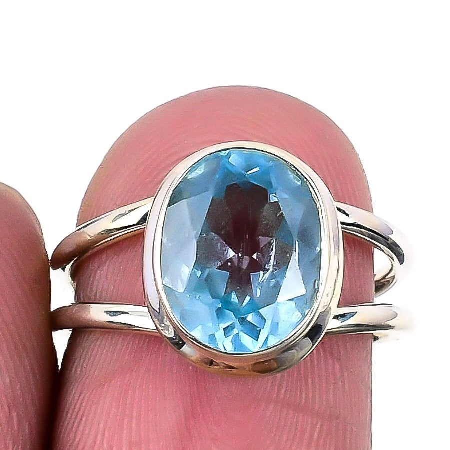 Swiss Blue Topaz Gemstone Solid Sterling Silver Statement Engagement Ring US 7
