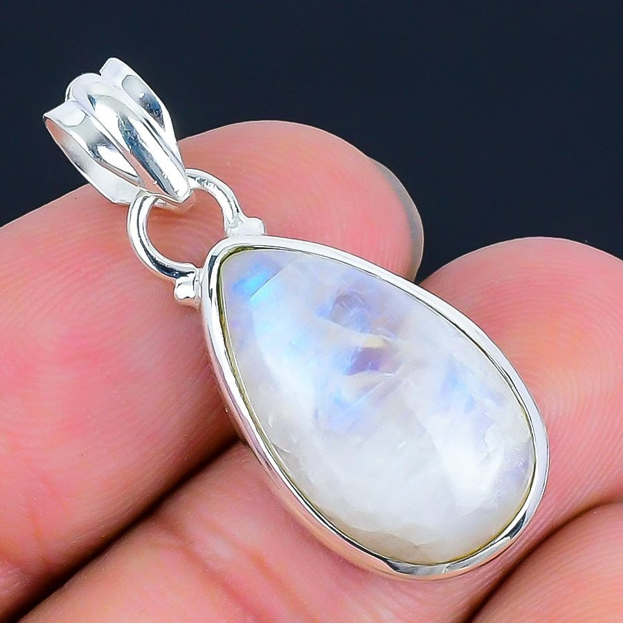 Natural Moonstone 925 Sterling Silver June Birth Bezel Boho New Pendant Jewelry