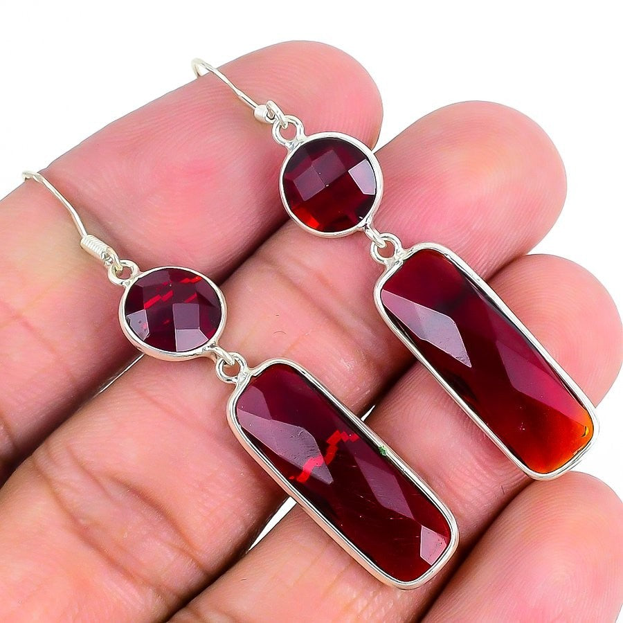 Natural Garnet Treated 925 Sterling Silver Drop Dangle Wife Channel Set Earrings
