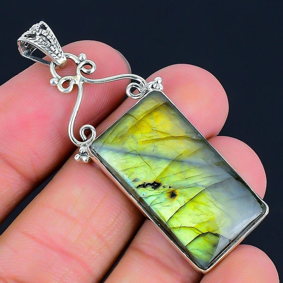 Labradorite Stone 925Ā SolidĀ Silver Anniversary Third Eye Chakra Pendant Jewelry