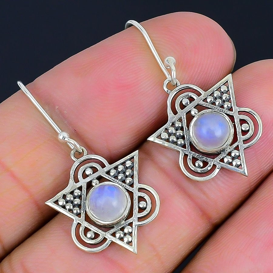 Natural Moonstone Drop Dangle Elegant Handcrafted Earrings Solid Sterling Silver