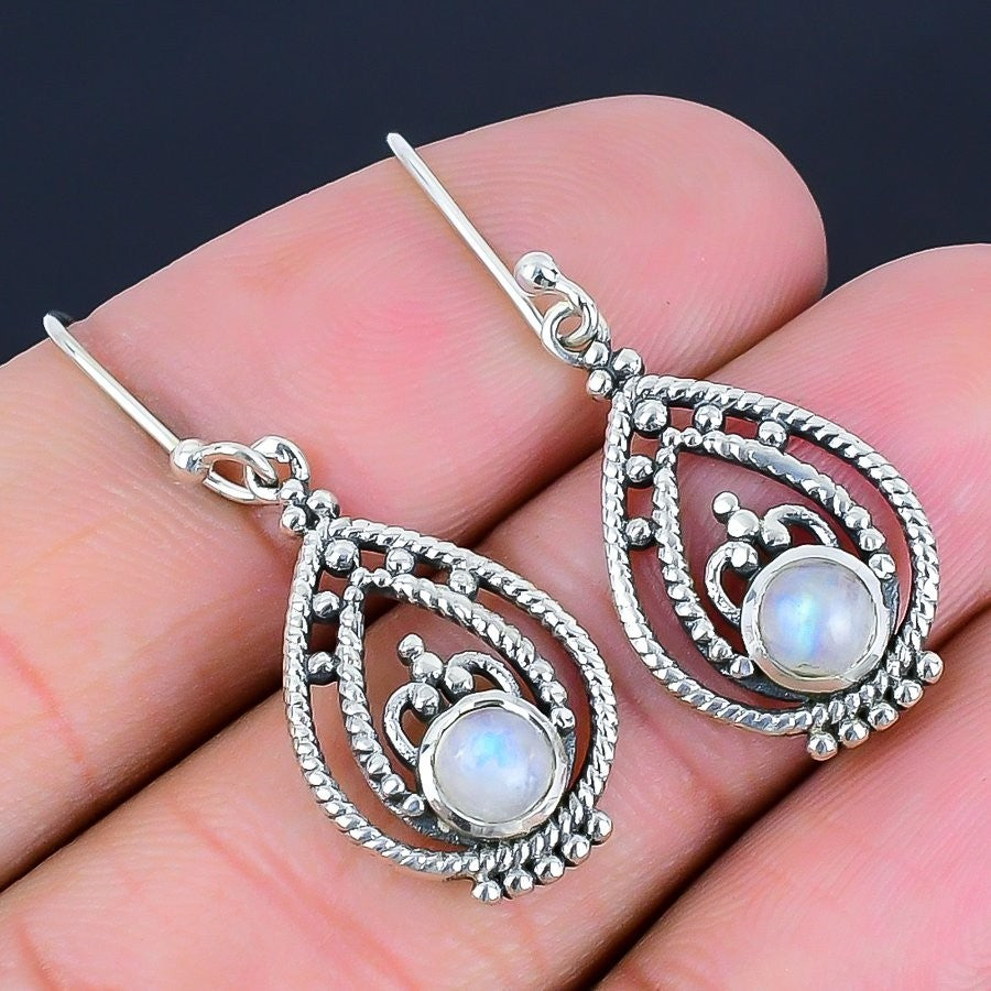 Rainbow Moonstone Gemstone Sterling Silver Boho Drop Engagement Sister Earrings