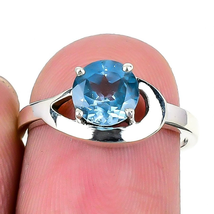 Natural Swiss Blue Topaz Statement Birthday Wife Ring Jewelry Solid Silver US 7