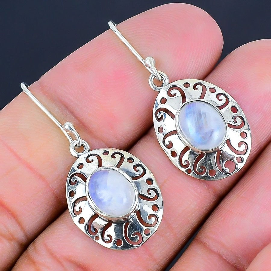 Rainbow Moonstone Stone Sterling Silver Anniversary Engagement Dangling Earrings
