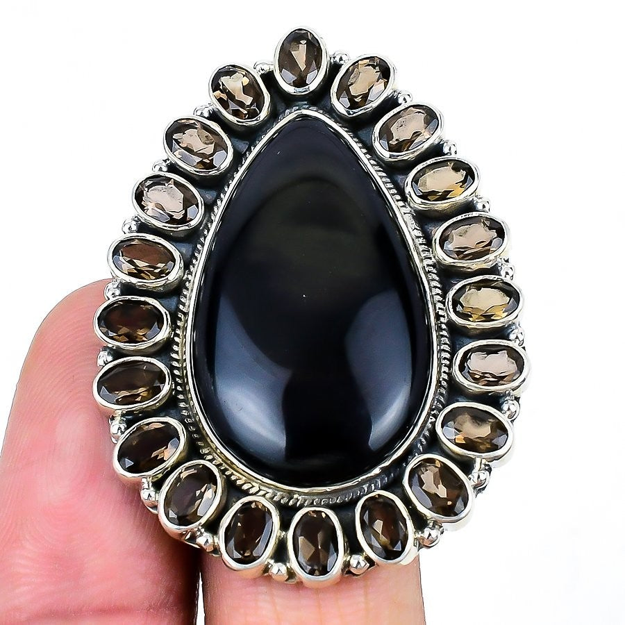 Natural Smoky Topaz 925 Silver Daughters Day Sister Statement Boho Ring Jewelry
