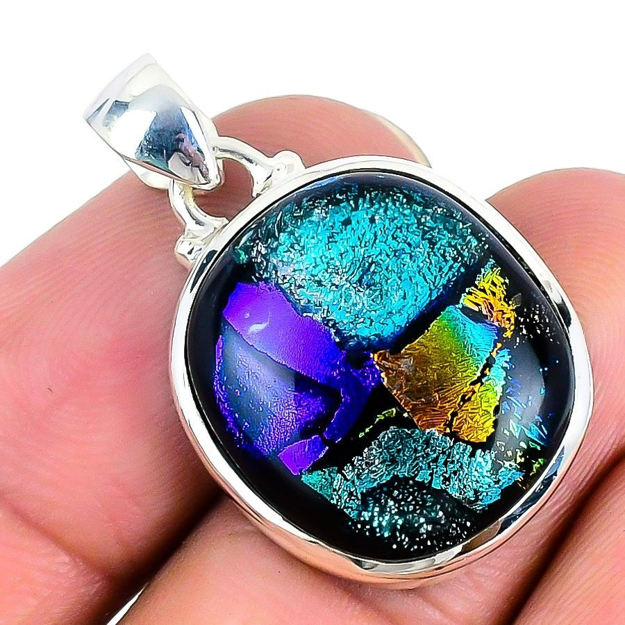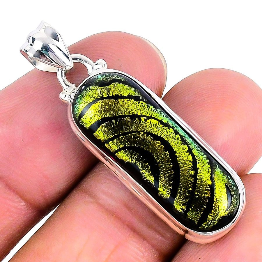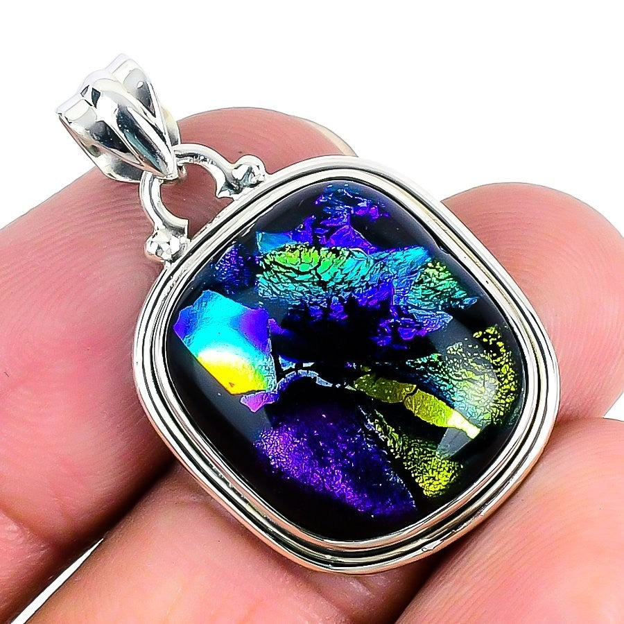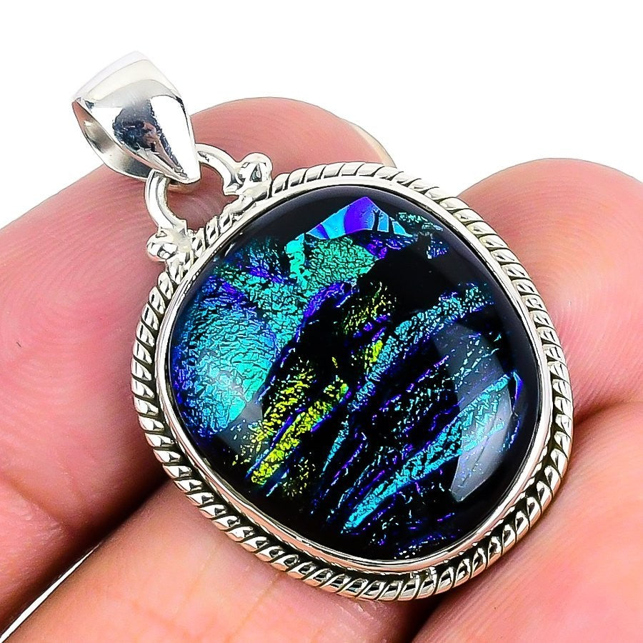 Natural Mexican Dico Glass Solid Silver Engagement Anniversary Pendant Jewelry
