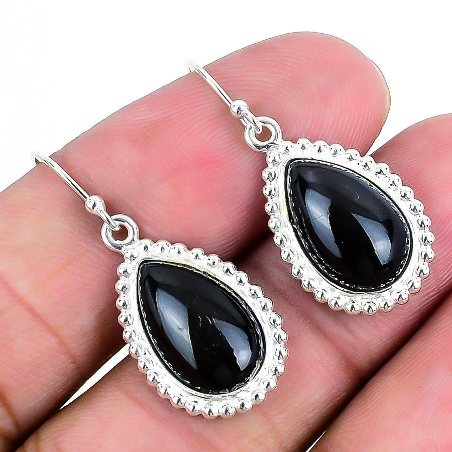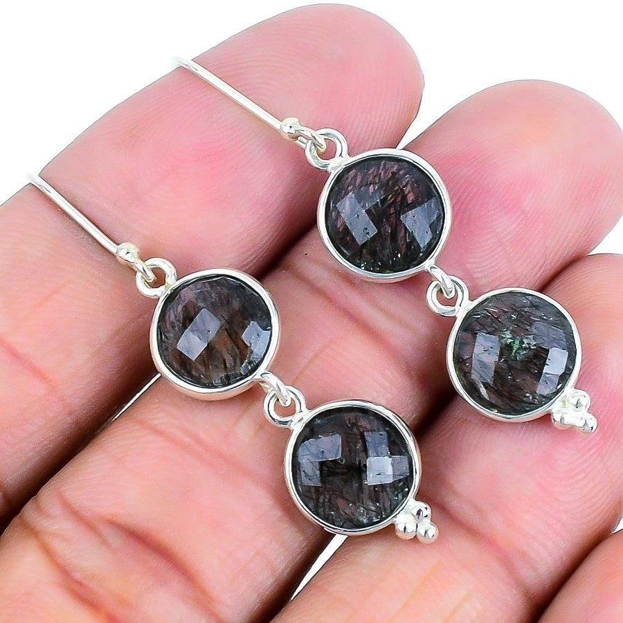 Black Rutile Gemstone Solid Sterling Silver Anniversary Dangling Ethnic Earrings