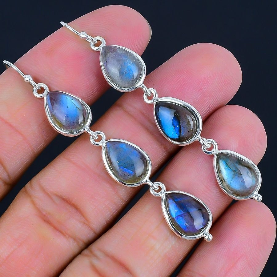 Natural Labradorite Sterling Silver Mother Bezel Drop Dangle Earrings Jewelry