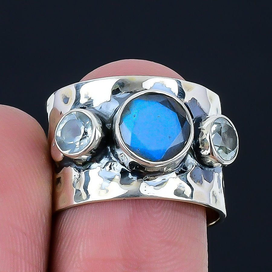 Third Eye Chakra Natural Labradorite Statement Ring Jewelry Size 7.5 925 Silver