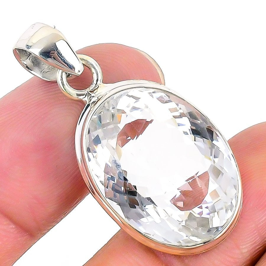 Crystal Stone 925Ā SolidĀ Silver Trendy Unique Ethnic Bezel Boho Pendant Jewelry