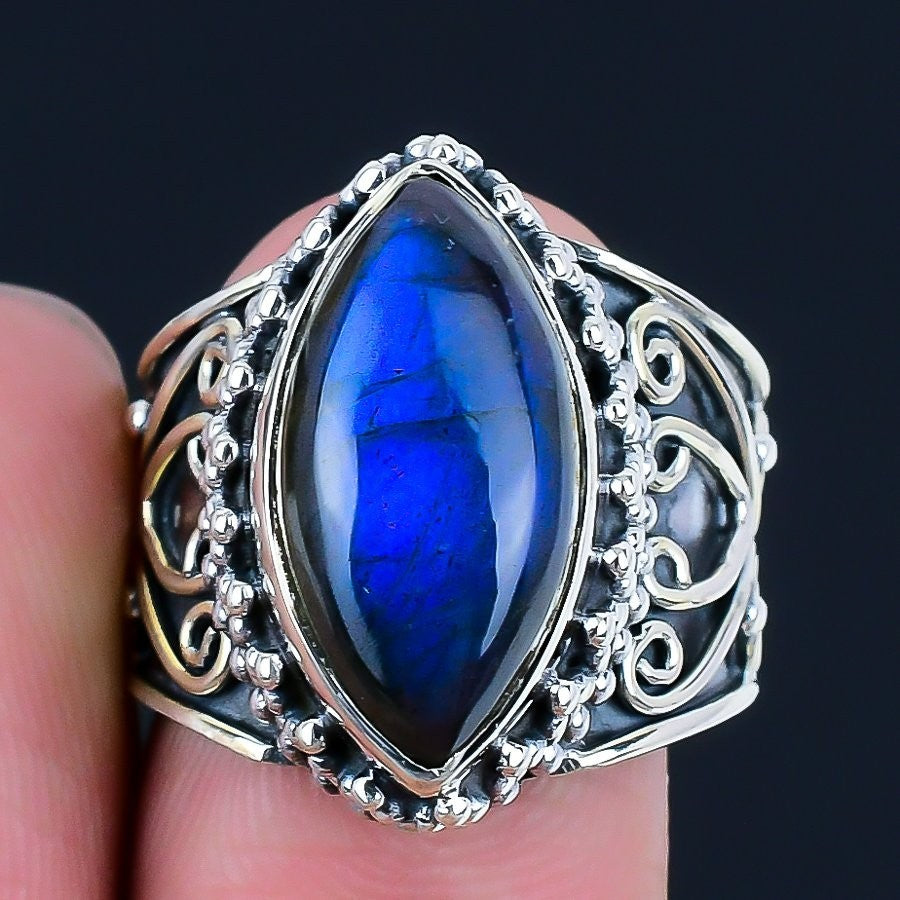 Labradorite Gemstone Solid Silver Daughters Day Statement Wife Ring Jewelry US 8