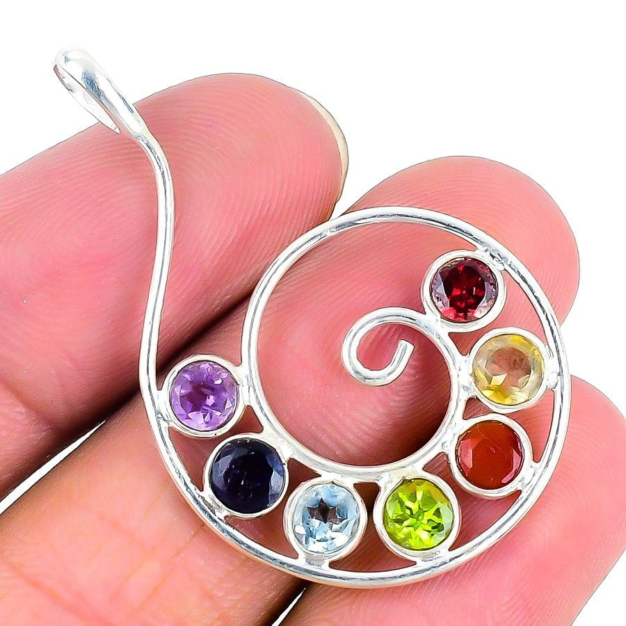 Seven Chakra Stone 925Ā SolidĀ Silver Bezel Sister Wedding Unique Pendant Jewelry