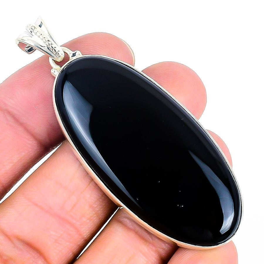Black Onyx Stone 925Ā SolidĀ Silver Root Chakra Handcrafted Birthday Bezel Pendant
