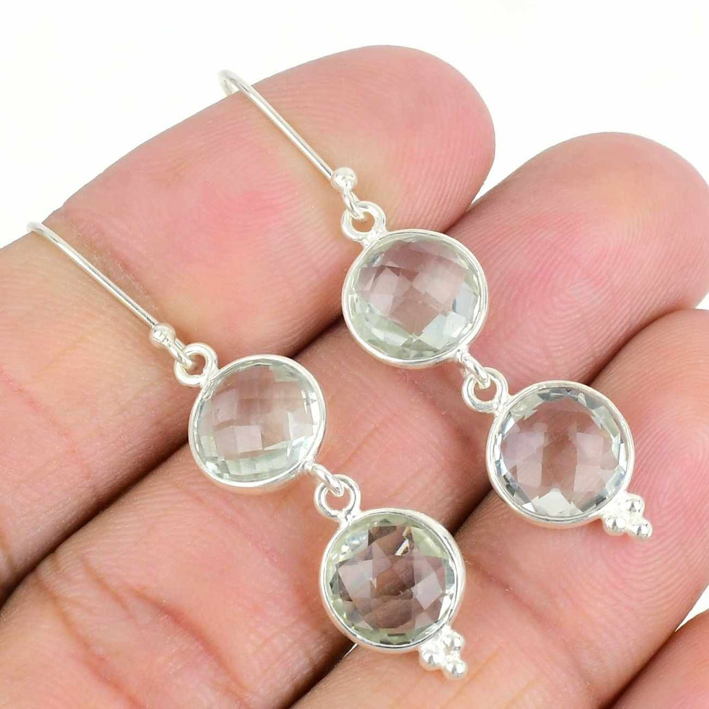 Natural Green Amethyst 925 Sterling Silver Engagement Dangling Earrings Jewelry