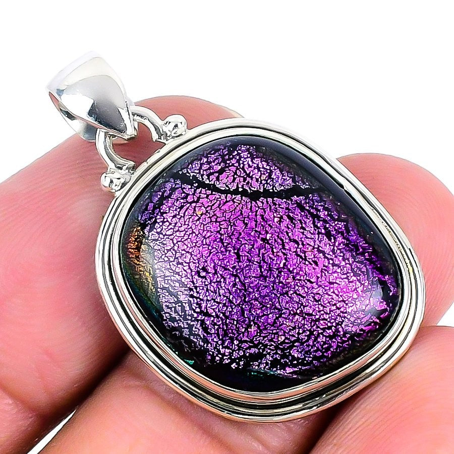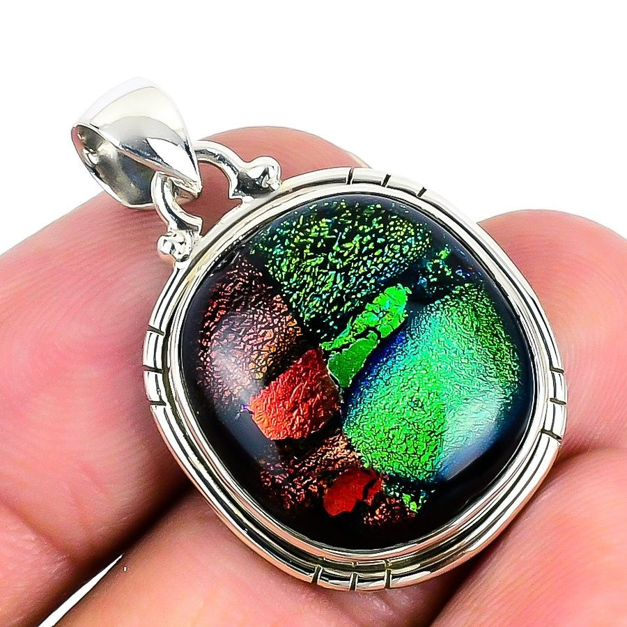 Mexican Dico Glass Gemstone 925Ā SolidĀ Silver Elegant Trendy Wife Pendant Jewelry