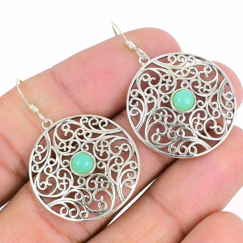 Natural turquoise Solid Silver Wedding Handcrafted Daughter Dangle Hook Earrings