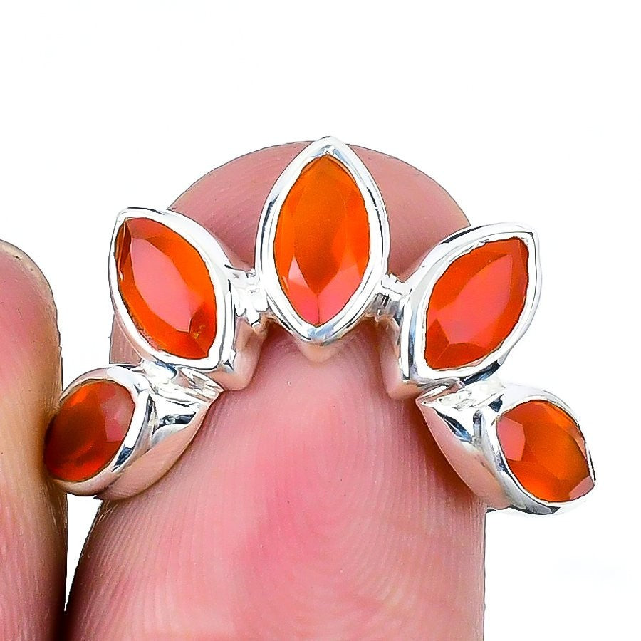 Natural Orange Carnelian Statement New Ring Jewelry Solid Sterling Silver US 8