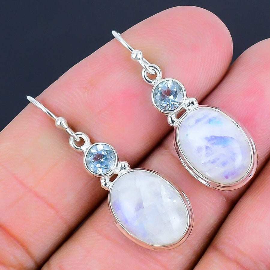 Natural Rainbow Moonstone Solid Sterling Silver Wife Drop New Earrings Jewelry
