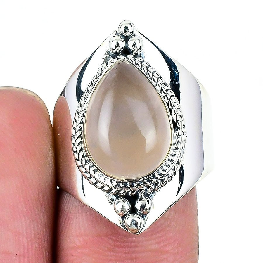 Heart Chakra Rose Quartz Gemstone 925 Silver Wife Statement Ring Jewelry Size 8