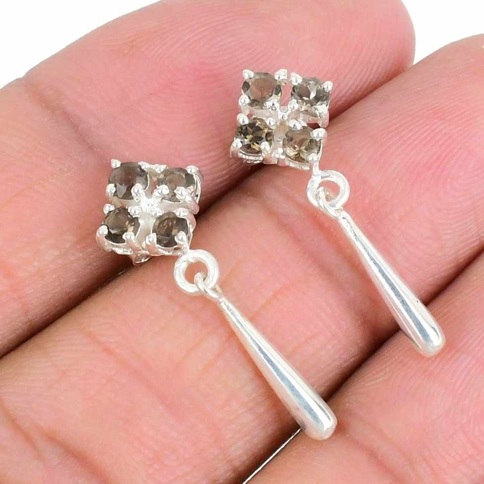 Smokey Stone Hook Trendy Drop Dangle Boho Sister Earrings Jewelry Solid Silver