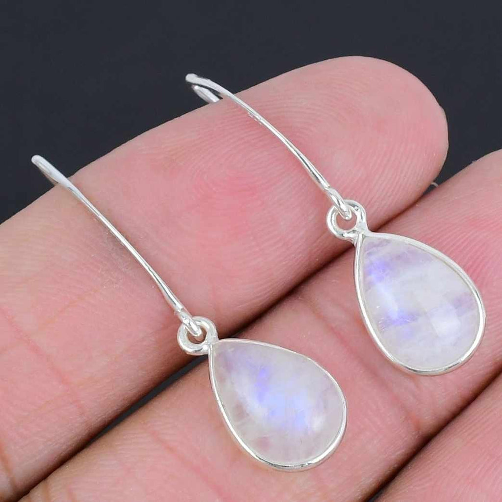 Natural Rainbow Moonstone 925 Sterling Silver Dangle Crown Chakra Boho Earrings
