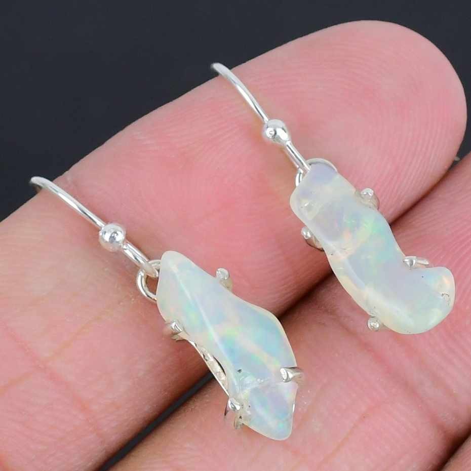 Ethiopian Opal Gemstone Handmade Wedding Dangle Earrings Solid Sterling Silver