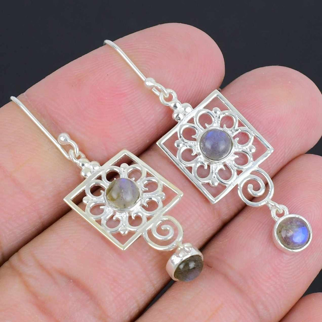 Labradorite Stone Solid Sterling Silver Dangling Mother Wedding Earrings Jewelry
