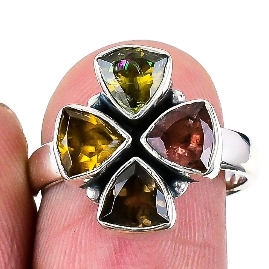 Natural Multi Tourmaline Sterling Silver Wedding Statement New Ring Jewelry US 8