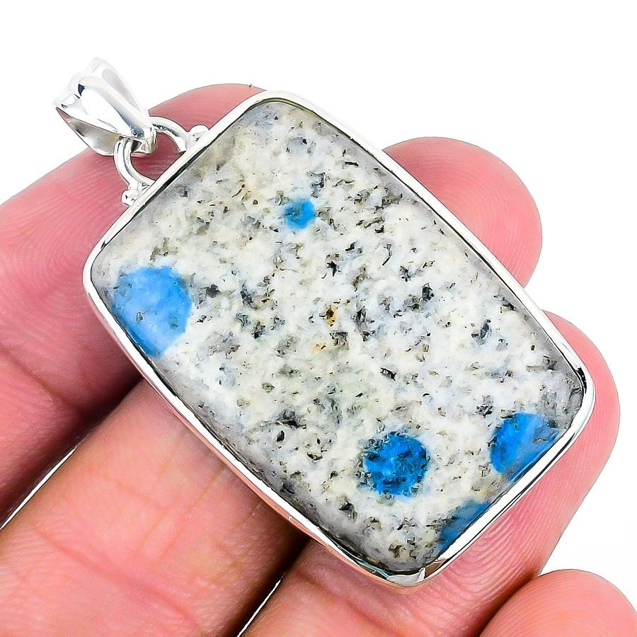K2 Azurite Stone Bezel Engagement Sister Elegant Pendant Solid Sterling Silver