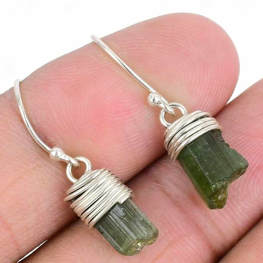 Green Tourmaline Stone 925 Silver Anniversary Daughters Day Dangle Hook Earrings