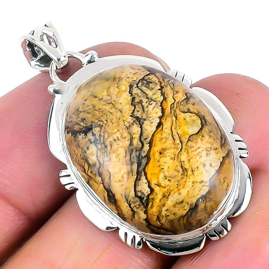 Daughters Day Sale Picture Jasper Gemstone 925 Sterling Silver Wedding Pendant