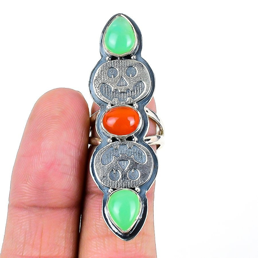 Chrysoprase Gemstone Solid Sterling Silver Boho Statement Wife Heart Chakra Ring