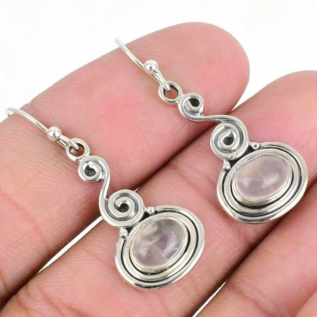 Rosequartz Gemstone Sterling Silver Artisan Dangle Drop Wedding Earrings Jewelry