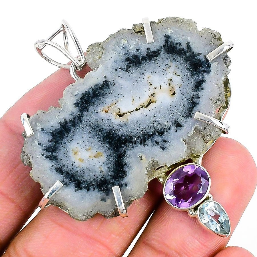 Daughters Day Sale Natural Amethyst Salactile 925 Silver Unique Sister Pendant