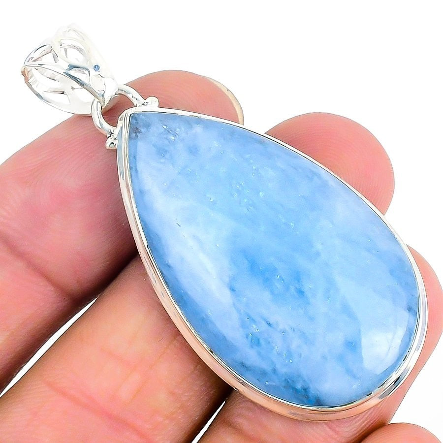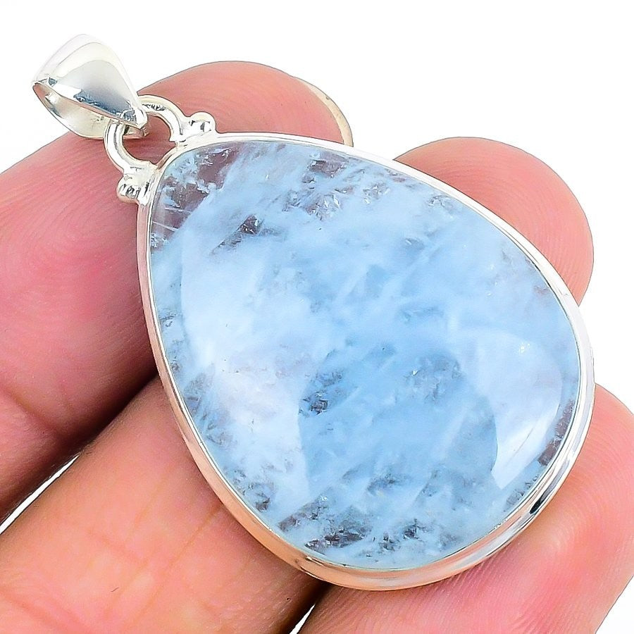 Aquamarine Stone Anniversary Birthday Handmade New Pendant Solid Sterling Silver