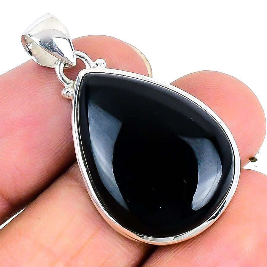Natural Black Onyx 925Ā SolidĀ Silver Bezel Boho Root Chakra Wife Pendant Jewelry