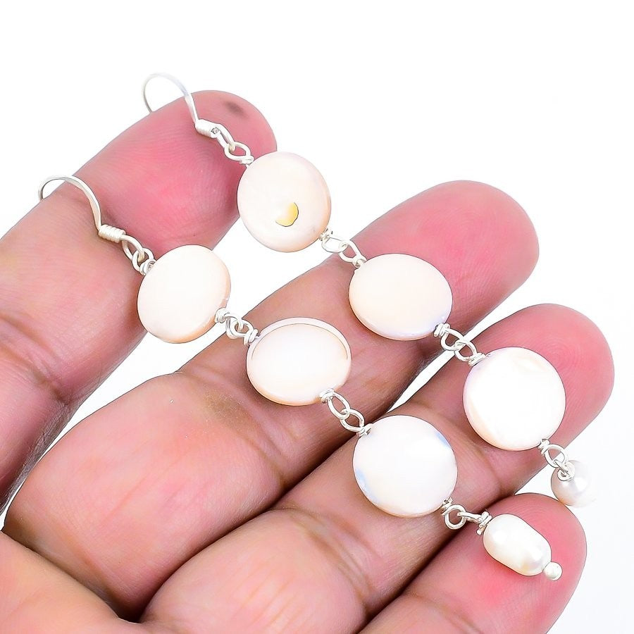 Blister Pearl Stone 925Ā SolidĀ Silver Wife Drop Daughters Day Push Back Earrings