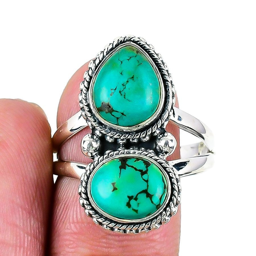 Tibetan Turquoise Gemstone Wife Statement Birthday Ring 925Ā SolidĀ Silver US 10.5