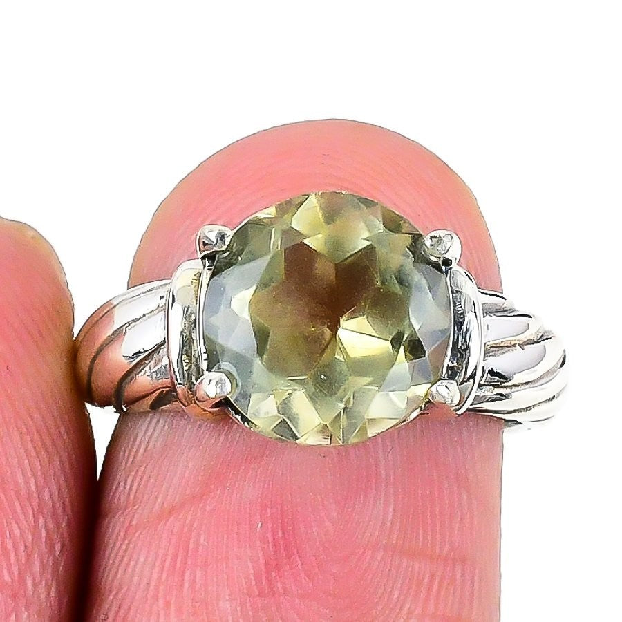 Green Amethyst Stone Solid Sterling Silver Daughter Statement Ring Jewelry US 8