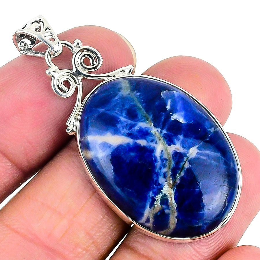 Natural Sodalite Solid Sterling Silver Daughter Handcrafted Bezel Unique Pendant