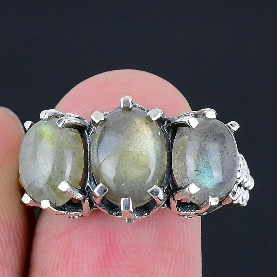 Third Eye Chakra Natural Labradorite 925 Sterling Silver Statement Sister Ring