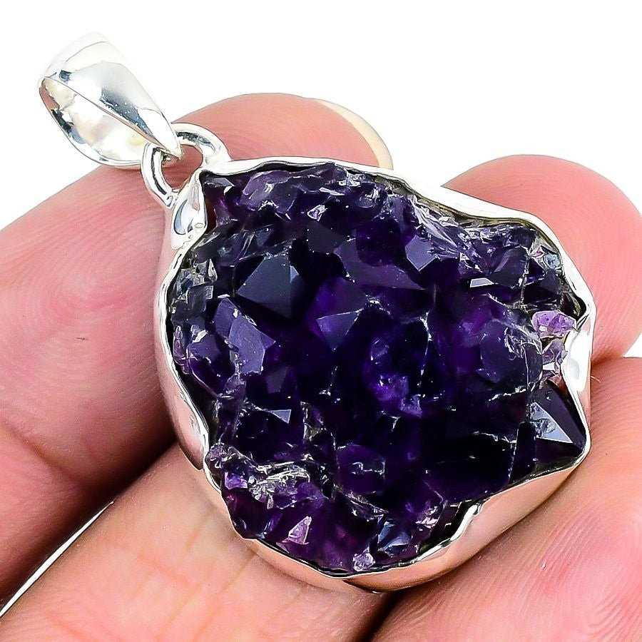 Natural Amethyst Druzy Solid Sterling Silver Bezel Wedding Anniversary Pendant